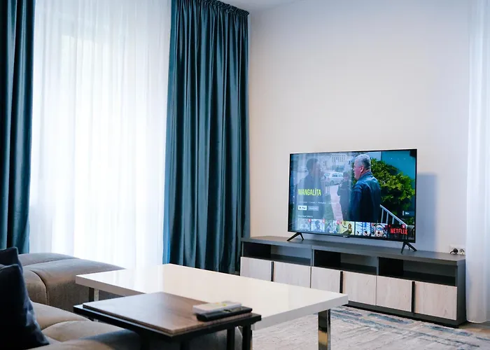 アパ-トメントアンリ・コアンダ国際空港から車で28分,ブカレストの5地区に位置しています. ブカレストの都市部は,約2km離れた所にあります. インタ-ナショナルな料理の食べ物は徒歩で13分以内行けるグリルバ-のRestaurant Vaporuに出しています. クレツレスク教会も車でわずか行ける場所にあります.